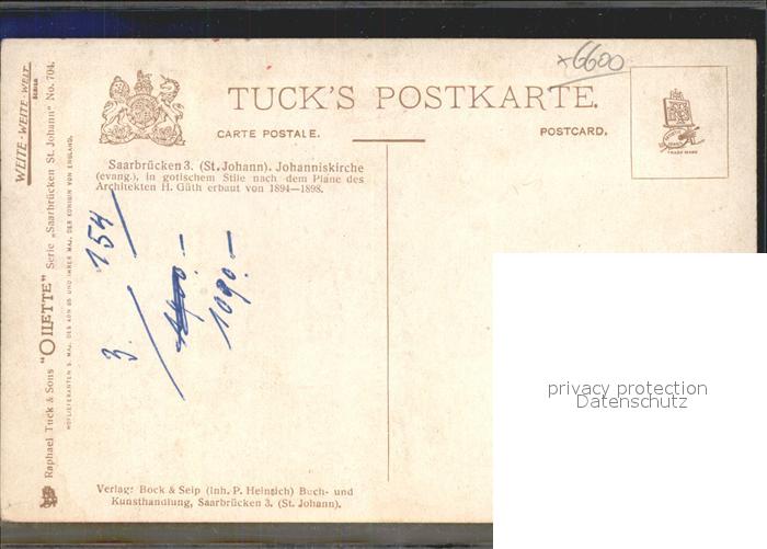 41968395 SAARBRueCKEN Saarland St Johann Johannniskirche Kuenstlerkarte postalisch nicht gelaufen Erhaltung siehe scans KatCode: 11110010041100
