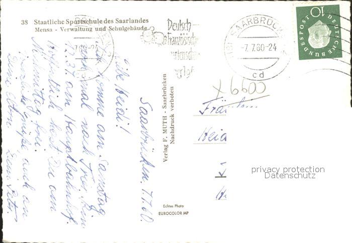 41792556 SAARBRueCKEN Saarland Staatl. Sportschule Mensa Verwaltung Schulgebaeude postalisch gelaufen Erhaltung siehe scans Alte Ansichtskarte Postkarte alte Postkarte Nata Katcode 11110010041100