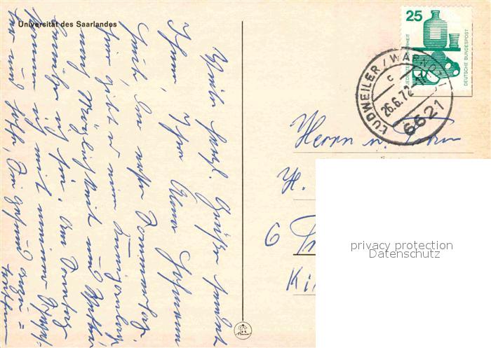 72840548 alte Postkarte SAARBRueCKEN Saarland Stadtpanorama mit Universitaet des Saarlandes postalisch gelaufen Erhaltung siehe scans [FriedD77] KatCode: 11110010041100