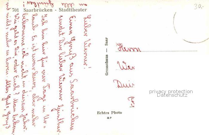 72800752 alte Postkarte SAARBRueCKEN Saarland Stadttheater postalisch gelaufen Erhaltung siehe scans [FriedD77] KatCode: 11110010041100