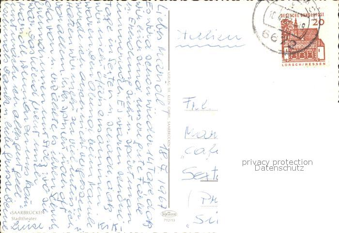 72222704 alte Postkarte SAARBRueCKEN Saarland Stadttheater postalisch gelaufen Erhaltung siehe scans KatCode: 11110010041100