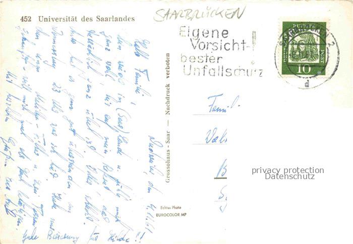 74043748 SAARBRueCKEN Saarland Universitaet des Saarlandes postalisch gelaufen Erhaltung siehe scans [FriedD77] alte Postkarte Frie Katcode 11110010041100