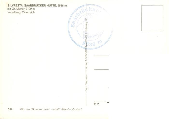 13913525 Saarbrueckerhuette 2538m Silvretta GR mit Gr Litzner postalisch nicht gelaufen Erhaltung siehe scans [FriedD77] KatCode: 11470360930078