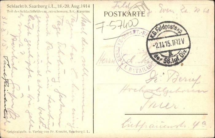 Saarburg Lothringen Schlachtfeld Artillerie Kaserne Zerstör