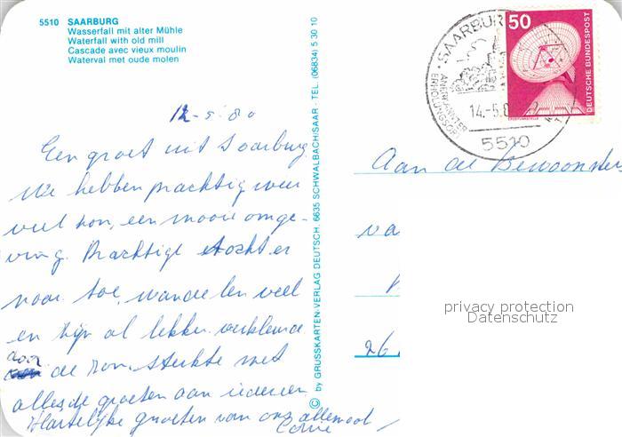 12615605 carte postale Saarburg Lothringen Wasserfall mit alter Muehle postalisch gelaufen Erhaltung siehe scans [WerneD78] KatCode: 11170057557630
