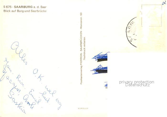 73813196 alte Postkarte Saarburg Saar Blick auf Burg und Saarbruecke postalisch gelaufen Erhaltung siehe scans [WerneD78] KatCode: 11110007235118