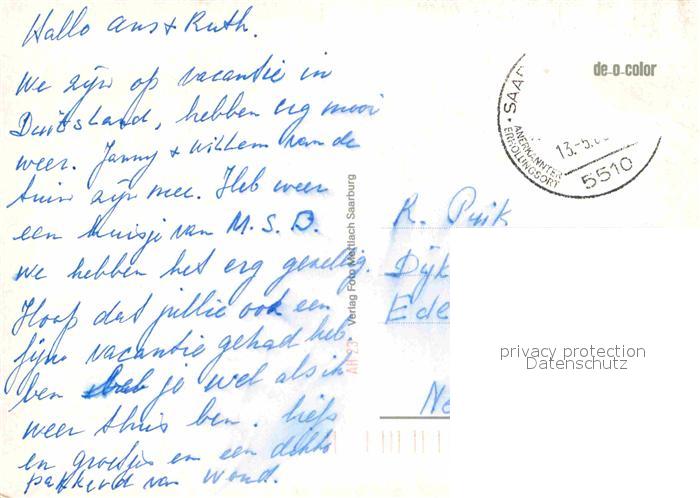 72916889 alte Postkarte Saarburg Saar Burg Partie am Fluss Sesselbahn Feriendorf Warsberg Wasserfall alte Muehlraeder postalisch gelaufen Erhaltung siehe scans [FriedD77] KatCode: 11110007235118