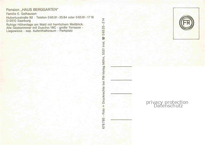 74100232 Saarburg Saar (ex Bez Trier) Rheinland-Pfalz Pension Haus Berggarten Gastraum Terrasse postalisch nicht gelaufen Erhaltung siehe scans [FriedD77] KatCode: 11110007235118