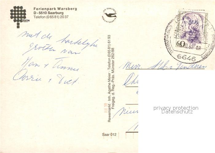 72943838 alte Postkarte Saarburg Saar Ferienpark Warsberg Fliegeraufnahme postalisch gelaufen Erhaltung siehe scans [FriedD77] KatCode: 11110007235118
