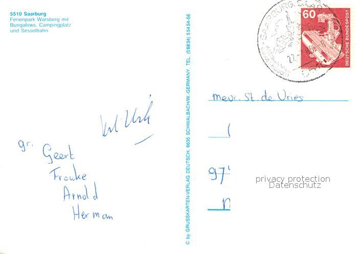 72932337 alte Postkarte Saarburg Saar Ferienpark Warsberg Sesselbahn Camping Bungalows postalisch gelaufen Erhaltung siehe scans [WerneD78] KatCode: 11110007235118
