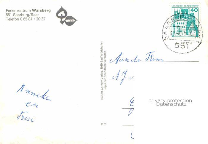 72763679 alte Postkarte Saarburg Saar Ferienzentrum Warsberg postalisch gelaufen Erhaltung siehe scans [AndreD76] KatCode: 11110007235118
