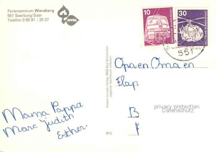 72943831 alte Postkarte Saarburg Saar Ferienzentrum Warsberg Bungalows Ferienhaeuser Saartal postalisch gelaufen Erhaltung siehe scans [FriedD77] KatCode: 11110007235118