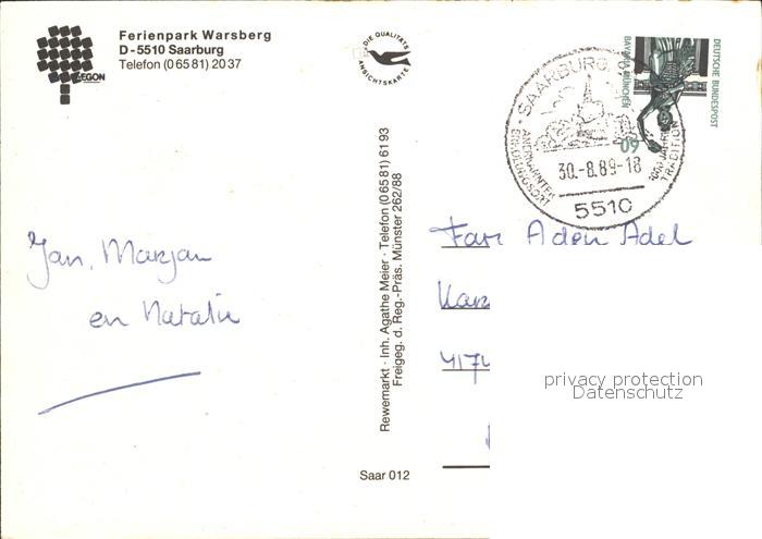 72255412 alte Postkarte Saarburg Saar Fliegeraufnahme Ferienpark Warsberg postalisch gelaufen Erhaltung siehe scans KatCode: 11110007235118