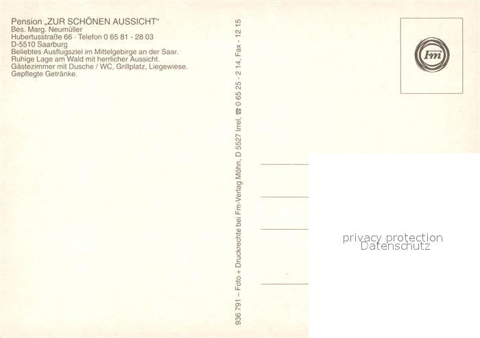 73334877 Saarburg Saar Pension Zur schoenen Aussicht postalisch nicht gelaufen Erhaltung siehe scans [LiesaD40] KatCode: 11110007235118