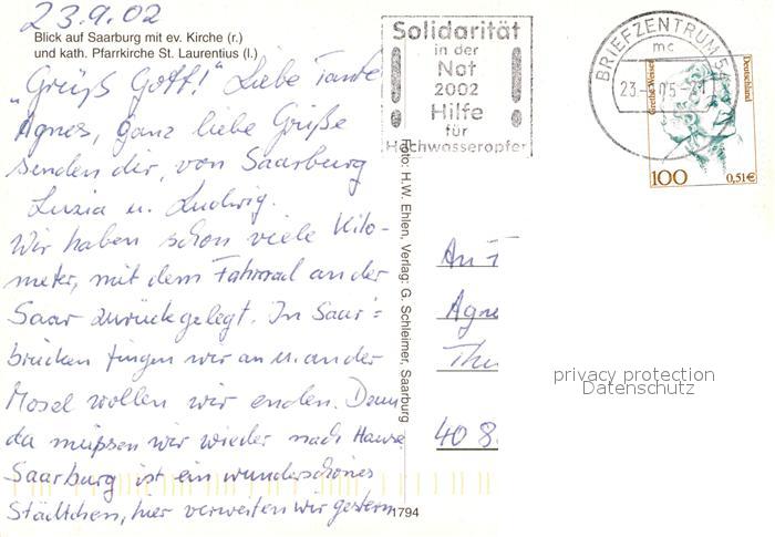 73232694 alte Postkarte Saarburg Saar Pfarrkirche Sankt Laurentius Evangelische Kirche postalisch gelaufen Erhaltung siehe scans [KathaD81] KatCode: 11110007235118