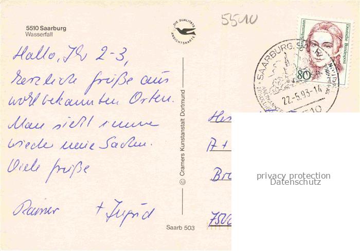 74052911 alte Postkarte Saarburg Saar Rheinland-Pfalz Altstadt Wasserfall postalisch gelaufen Erhaltung siehe scans [FriedD77] KatCode: 11110007235118