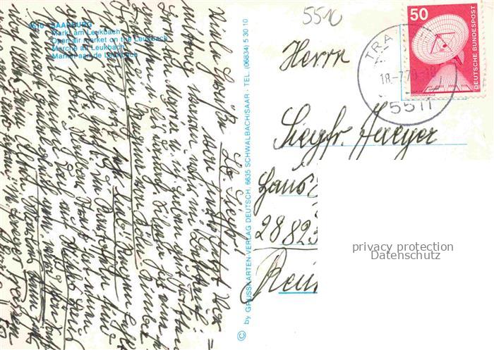 74052912 alte Postkarte Saarburg Saar Rheinland-Pfalz Markt am Leukbach postalisch gelaufen Erhaltung siehe scans [FriedD77] KatCode: 11110007235118
