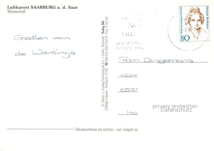 72932480 alte Postkarte Saarburg Saar Wasserfall postalisch gelaufen Erhaltung siehe scans [WerneD78] KatCode: 11110007235118