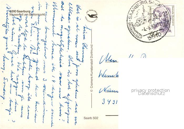 73308266 alte Postkarte Saarburg Saar Wasserfall am Buttermarkt postalisch gelaufen Erhaltung siehe scans [WerneD78] KatCode: 11110007235118