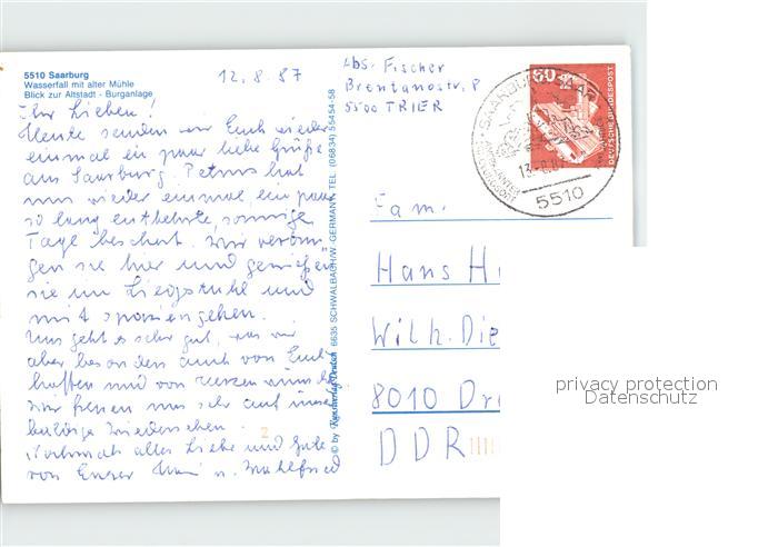 72362151 alte Postkarte Saarburg Saar Wasserfall mit alter Muehle und Burg postalisch gelaufen Erhaltung siehe scans KatCode: 11110007235118