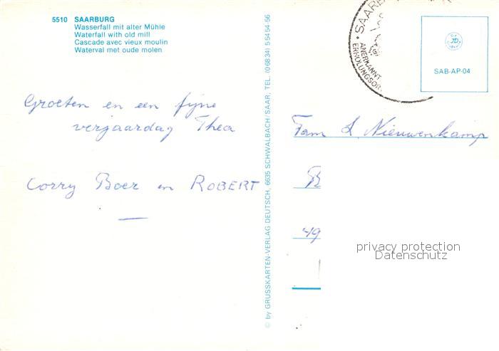 72943783 alte Postkarte Saarburg Saar Wasserfall mit alter Muehle postalisch gelaufen Erhaltung siehe scans [PaolaD17] KatCode: 11110007235118