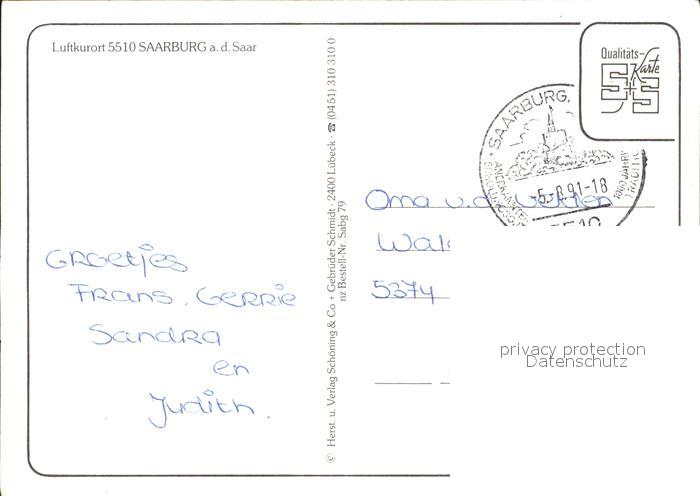72286592 alte Postkarte Saarburg Saar Weinstadt postalisch gelaufen Erhaltung siehe scans KatCode: 11110007235118