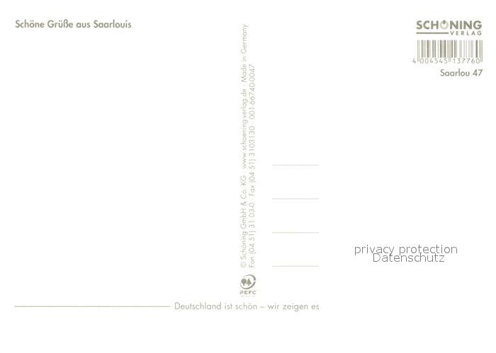 73180056 Saarlouis Partie an der Saar Kirche Innenstadt Deutsches Tor Rathaus Deutsches Tor Koenigskrone Galerie Kleiner Markt Bastion Altstadt Brunnen postalisch nicht gelaufen Erhaltung siehe scans [FriedD77] KatCode: 11110010044115