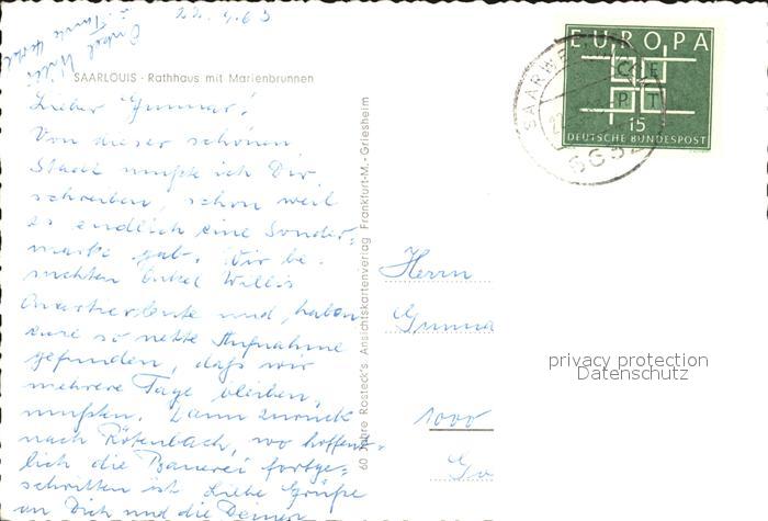 72530658 alte Postkarte Saarlouis Rathaus mit Marienbrunnen postalisch gelaufen Erhaltung siehe scans [AndreD76 kv009box] KatCode: 11110010044115
