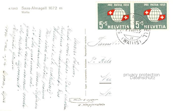 13831132 alte Postkarte Saas-Almagell VS Panorama mit Kirche postalisch gelaufen Erhaltung siehe scans [FriedD77] KatCode: 11470230750734