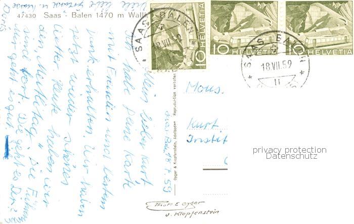 13831159 alte Postkarte Saas-Balen VS Ortsansicht postalisch gelaufen Erhaltung siehe scans [FriedD77] KatCode: 11470230750736