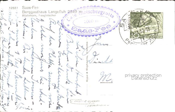 11837011 alte Postkarte Saas-Fee Berggasthaus Landefluh Allalinhorn Feegletscher postalisch gelaufen Erhaltung siehe scans KatCode: 11470230750738