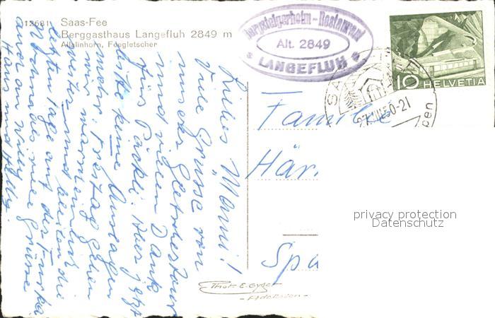 11745715 alte Postkarte Saas-Fee Berggasthaus Langefluh Allalinhorn Feegletscher postalisch gelaufen Erhaltung siehe scans KatCode: 11470230750738