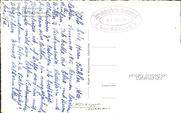 11853233 Saas-Fee Berggasthaus Langefluh mit Allalinhorn und Feegletscher postalisch nicht gelaufen Erhaltung siehe scans KatCode: 11470230750738