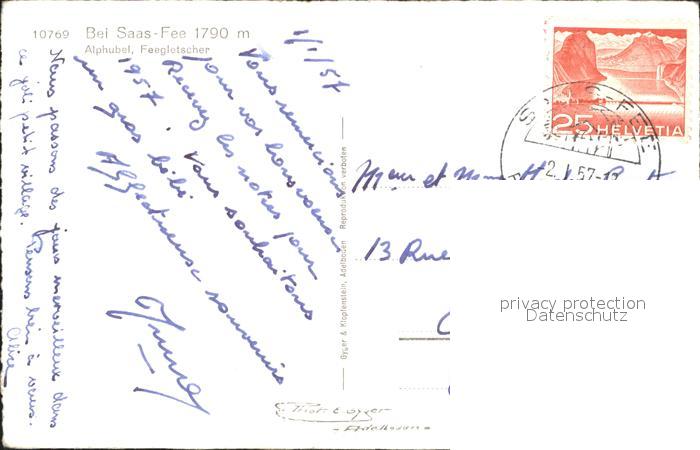 11745724 alte Postkarte Saas-Fee mit Alphubel und Feegletscher postalisch gelaufen Erhaltung siehe scans KatCode: 11470230750738