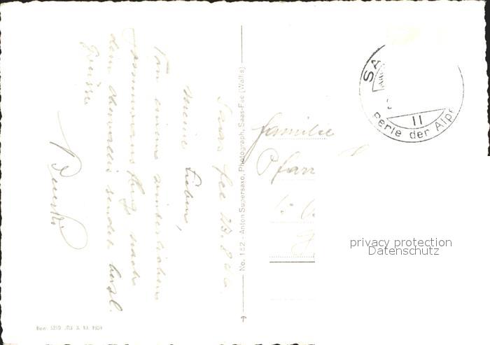 11635482 alte Postkarte Saas-Fee Ortspartie Kirche Allalingruppe Gletscher Walliser Alpen postalisch gelaufen Erhaltung siehe scans KatCode: 11470230750738
