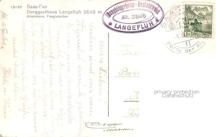 13831093 alte Postkarte Saas-Fee VS Bergasthaus Langefluh mit Allalinhorn und Feegletscher postalisch gelaufen Erhaltung siehe scans [FriedD77] KatCode: 11470230750738