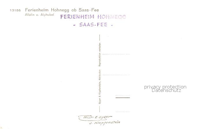 13831097 Saas-Fee VS Ferienheim Hohnegg mit Allalin und Alphubel postalisch nicht gelaufen Erhaltung siehe scans [FriedD77] KatCode: 11470230750738