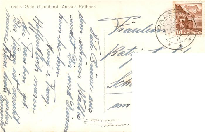 13908436 alte Postkarte Saas-Grund VS mit Ausser Rothorn postalisch gelaufen Erhaltung siehe scans [FriedD77] KatCode: 11470230750740