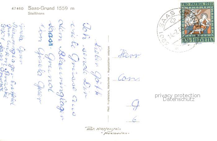 13831164 alte Postkarte Saas-Grund VS Panorama mit Stellihorn postalisch gelaufen Erhaltung siehe scans [FriedD77] KatCode: 11470230750740