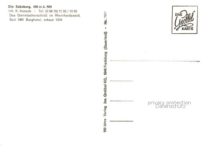73024516 Sababurg Die Sababurg Burghotel postalisch nicht gelaufen Erhaltung siehe scans [WerneD78] KatCode: 11110006633013