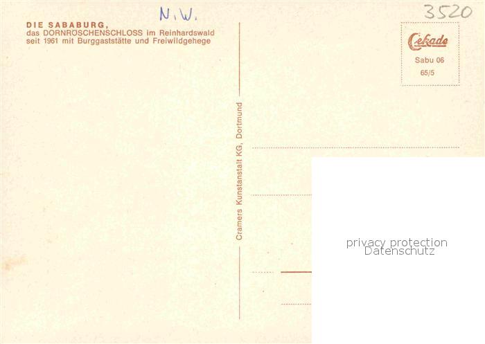 72911910 Sababurg Dornroeschenschloss Burggaststaette postalisch nicht gelaufen Erhaltung siehe scans [NatalD47] KatCode: 11110006633013