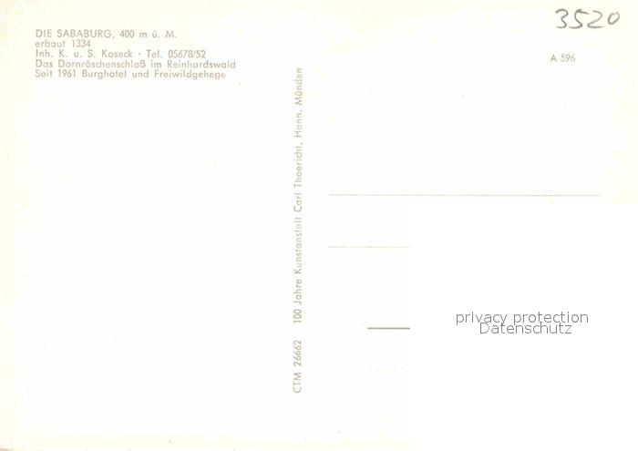 72911905 Sababurg Dornroeschenschloss Burghotel postalisch nicht gelaufen Erhaltung siehe scans [NatalD47] KatCode: 11110006633013