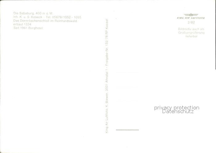 72113903 Sababurg Dornroeschenschloss im Reinhardswald Fliegeraufnahme postalisch nicht gelaufen Erhaltung siehe scans KatCode: 11110006633013
