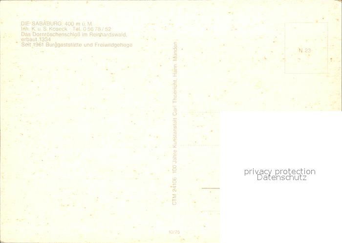 72425019 Sababurg Dornroeschenschloss im Reinhardswald postalisch nicht gelaufen Erhaltung siehe scans KatCode: 11110006633013