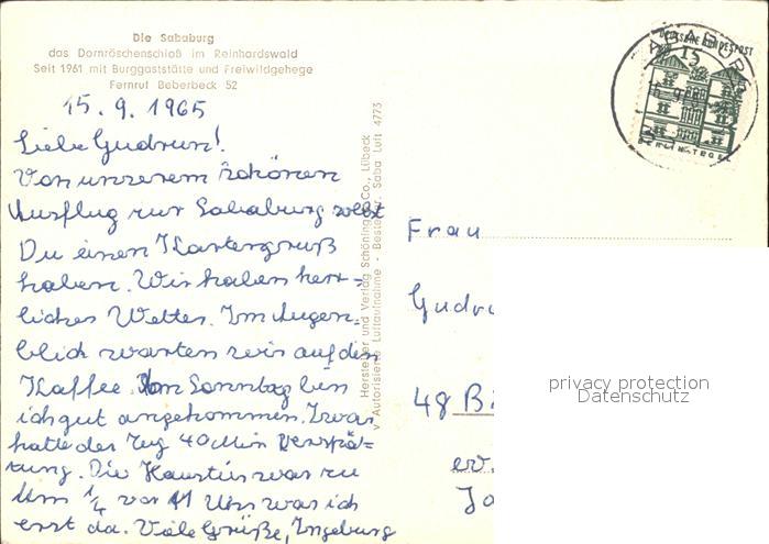71908927 alte Postkarte Sababurg Dornroeschenschloss Reinhardswald postalisch gelaufen Erhaltung siehe scans KatCode: 11110006633013