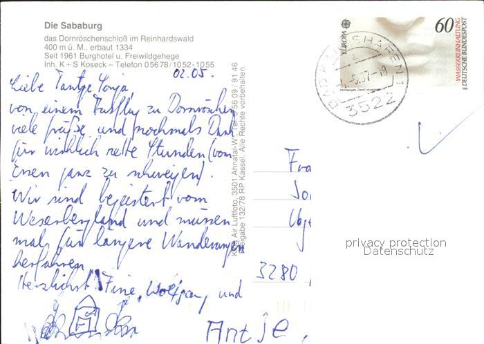 71984152 alte Postkarte Sababurg Dornroeschenschloss Reinhardswald Fliegeraufnahme postalisch gelaufen Erhaltung siehe scans KatCode: 11110006633013