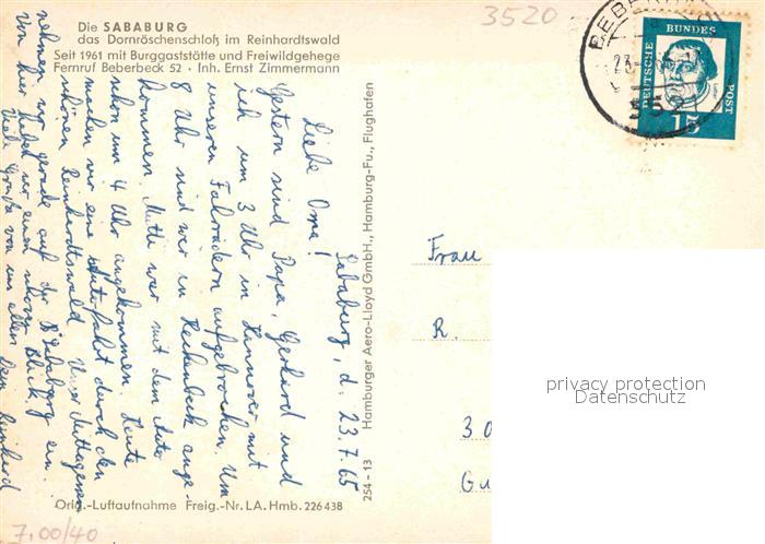 72911909 alte Postkarte Sababurg Fliegeraufnahme Dornroeschenschloss postalisch gelaufen Erhaltung siehe scans [NatalD47] KatCode: 11110006633013