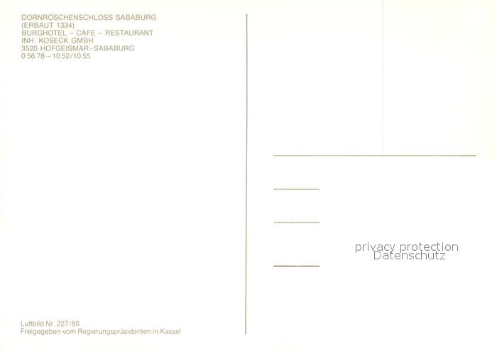 73540059 Sababurg Fliegeraufnahme postalisch nicht gelaufen Erhaltung siehe scans [WerneD78] KatCode: 11110006633013