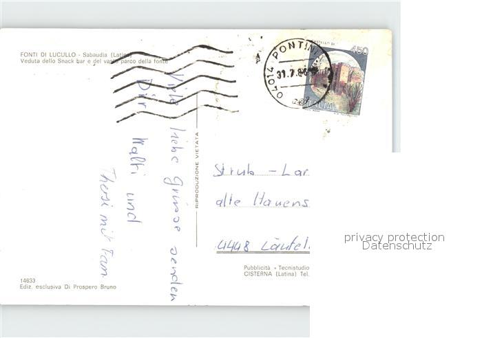 old postcard Sabaudia Fonti di Lucullo Snack Bar postalisch gelaufen Erhaltung siehe scans