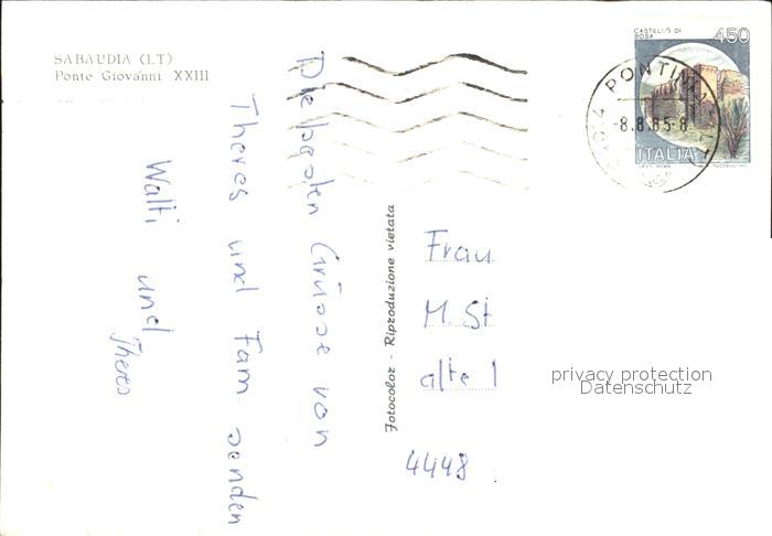 old postcard Sabaudia Ponte Giovanni XXIII Bruecke postalisch gelaufen Erhaltung siehe scans
